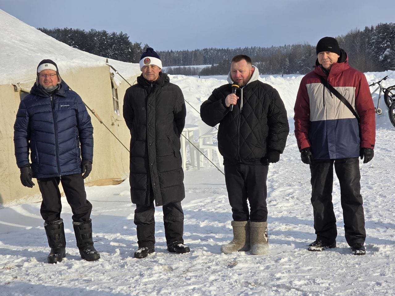 Участники мероприятия состязались в поднятии штанги, велосипедном кроссе, стрельбе из лука и броске валенка в цель!